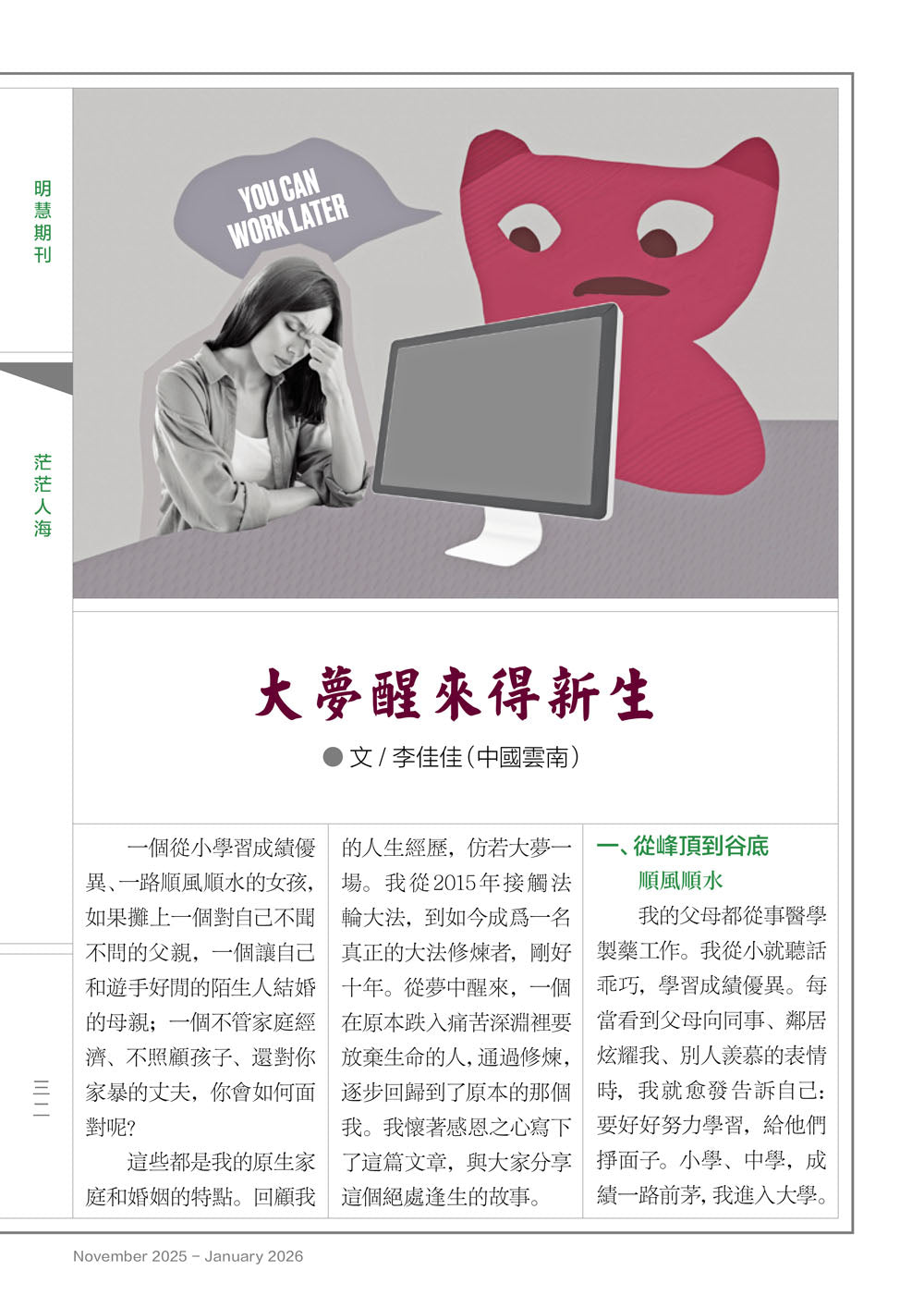1、電子版(繁體字):請在本網站訂購。這將是您對明慧期刊工作的一份支持和鼓勵。